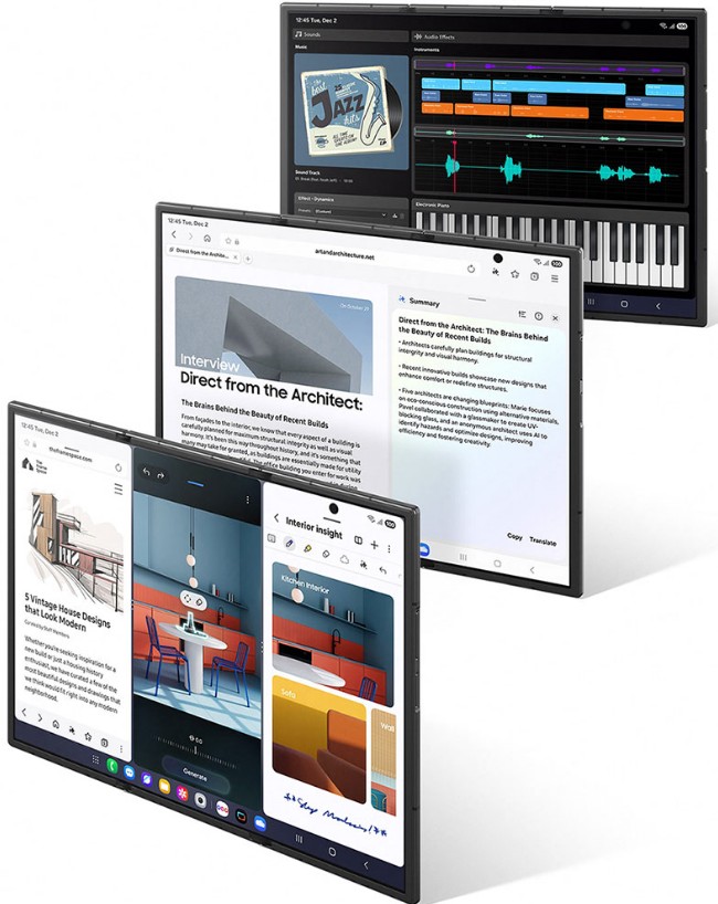 O modelo triplo permite transportar um dispositivo com comportamento semelhante ao de um tablet de cerca de 10 polegadas, mas mantendo dimensões compatíveis com o bolso. Para usuários avançados, isso significa mais espaço para multitarefa, criação de conteúdo e fluxos de trabalho produtivos, superando até mesmo os dobráveis do tipo livro. O foco, não está nas funções básicas, mas na possibilidade de eliminar a necessidade de um segundo aparelho.